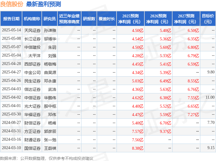 最新盈利预测明细如下: